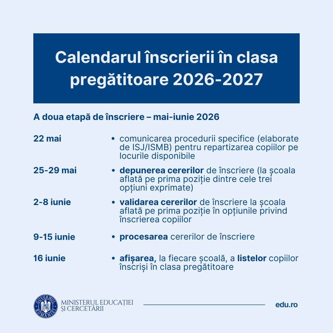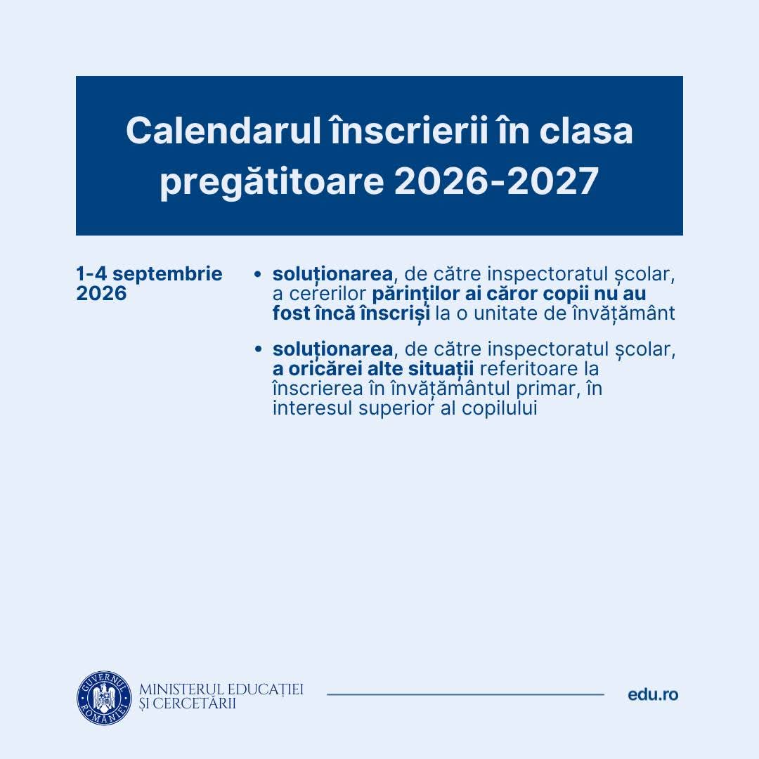 Calendarul înscrierii în clasa pregătitoare 2026-2027